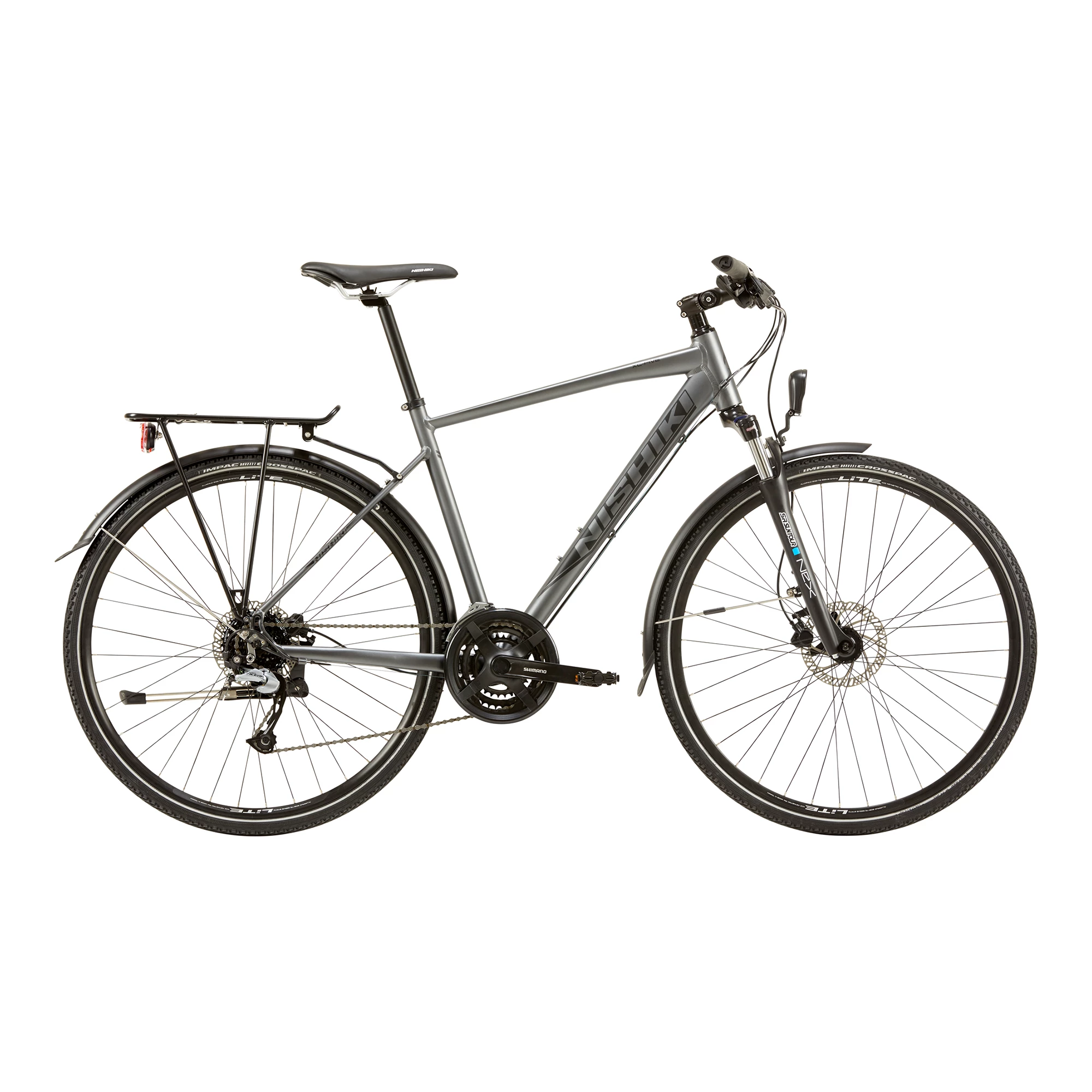 – Sadel: Nishiki hybrid race svart